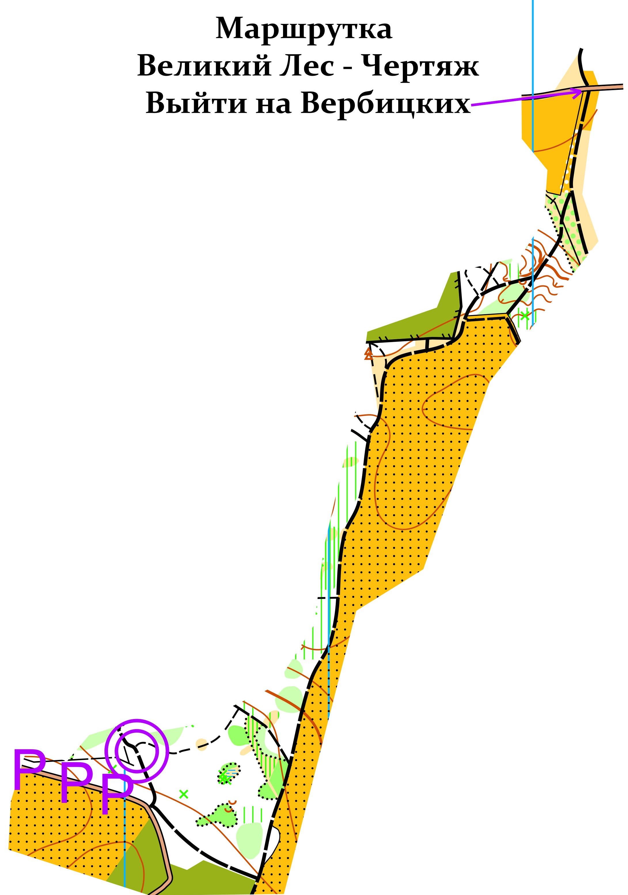 «Чертяж»: подготовлена в 2016 году, корректировка 2019 года, автор: Мемелов Алексей. Масштаб 1:10000, сечение рельефа 2.5 м. Карта выполнена в стандарте ISOM 2017. Лес в основном хвойных пород, от хорошей до плохой пробегаемости. Сеть дорог и тропинок на большей части карты развита слабо. Рельеф пологий, перепад высот на склоне – до 15 метров. На некоторых участках карты поваленные деревья могут влиять на пробегаемость. На местности присутствуют области вырубки и падения леса различных размеров, в основном заросшие кустами. Следы вывоза леса обозначены символом 509 (просека), они не дают преимущества в скорости бега, могут быть завалены и трудноразличимы.