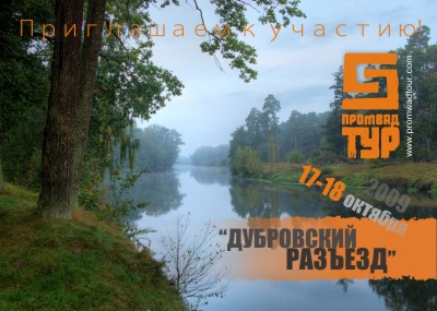 17-18 октября (суббота-воскресенье) 2009 г. на берегу р.Свислочь близ г.Осиповичи состоится старт осенней приключенческой гонки «Дубровский разъезд». В заключительной гонке сезона будет разыгран кубок приключенческих гонок “Промвад Тур’09” среди лучших команд и разделен призовой фонд среди сильнейших мультиспортсменов РБ по результатам сезона.