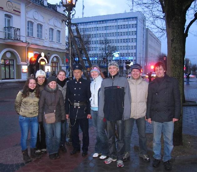 Ориентировщики БГУ с городским фонарщиком, который с наступлением сумерек
